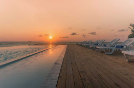 24 Water Villas sont quant à elles situées sur pilotis au-dessus du lagon. Elles mesurent environ 70 m2, et sont dotées d’un lit king-size et d’un canapé-lit pour deux personnes. La salle de bains est très lumineuse et bénéficie d’une douche extérieure. Elles offrent une vue imprenable sur l’horizon turquoise, et un accès direct pour la baignade depuis la très belle terrasse.