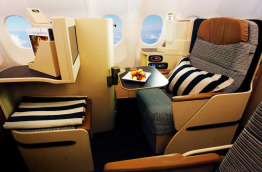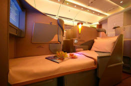 Les sièges avec une configuration en épi ont un accès direct au couloir. Ils disposent de repose tête ajustables, repose pied, soutien lombaire et massage intégré. Ils se transforment en confortables lits de 200 cm avec couverture en soie dupion et duvet en coton. Une porte coulissante garantie votre intimité. Vous disposez également d’un mini bar et d’une penderie personnelle. Votre chef personnel, recruté parmi les plus grands restaurants, vous aidera à choisir entre les différents menus ainsi que les vins sélectionnés parmi les meilleurs vignobles du monde. Un écran LCD de 57 cm et un casque antibruit vous permettent de vous isoler pour profiter pleinement des programme. Des ports lecteur mp3, USB, Ethernet et audio vous offrent un large choix d’options de connectivité.