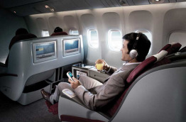 - Repas à bord : 3 plats au choix et vin servi à discrétion, ainsi que des en-cas et boissons distribués tout au long des vols longs-courriers,