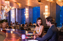 Enfoui à hauteur de l’immense aquarium de l’hôtel, le restaurant Ossiano vous permettra de dîner en tête à tête avec les différents bancs de poissons, face aux coraux et aux anémones multicolores.
