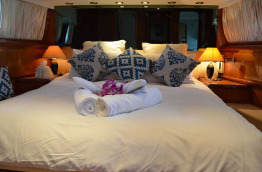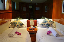 | Aménagements cabines | 5 cabines dont 3 cabines passagers : 1 cabine avec 1 lit double, 2 cabines avec des lits jumeaux. Serviette de toilette, serviette de bain, air conditionné, douche et toilettes privatives. |