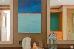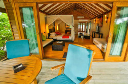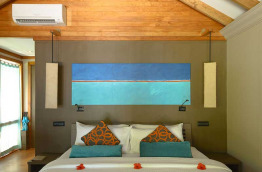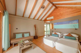 71 Sunset Beach Villas identiques, se trouvent quant à elles sur le côté Ouest à l’intérieur de l’atoll. La seule différence au niveau des aménagements réside dans la décoration murale.