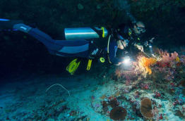 Le centre de plongée est géré par l’hôtel et vous assure une totale découverte des sites protégés du Nord des Maldives. Une trentaine de sites est accessible entre 20 et 40 minutes de trajet en dhoni ou bateau rapide. Cette région est encore peu développée au tourisme et les récifs sont très peu visités. Tous les cours sont possibles pour tous les niveaux.
