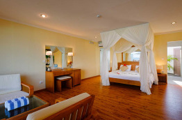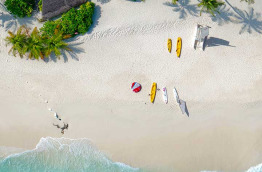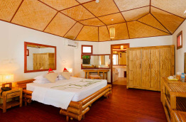 50 Beach Bungalows d’environ 53 m2 sont de style local et offrent une décoration tropicale. Ils sont individuels pour la plupart et couverts de toits de palme. Ils sont disposés sur la plage, tout autour de l’île.