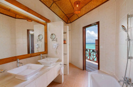 20 Superior Water Bungalows de 78 m2 ont été inaugurés en 2020, et se trouvent le long de l’autre ponton. Ils bénéficient d'une décoration plus moderne, et d’une salle de bains spacieuse avec notamment une partie extérieure.