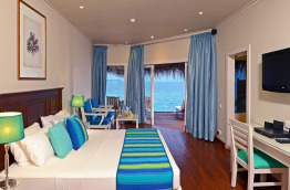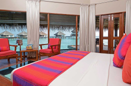 15 Water Villas et 11 Sunset Water Villas, sur pilotis, mesurent environ 67 m2. Elles se différencient par leur localisation et leur vue. Elles disposent en plus d'une belle terrasse, dotée d’une échelle pour descendre directement dans la mer. Elles peuvent recevoir jusqu’à 3 adultes ou 2 adultes et 1 enfant.