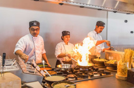 Le Asian Wok est construit sur pilotis. Il propose des spécialités asiatiques ainsi qu’un Teppanyaki. The Reef, installé sur la plage, cuisine entre autres des produits de la mer grillés au feu de bois. Enfin, goûtez aux spécialités italiennes au restaurant A-Mare, ou aux classiques méditerranéens au restaurant Vilu.