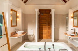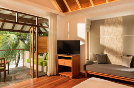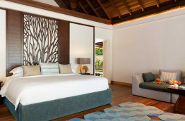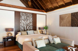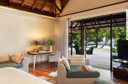34 Beachfront Deluxe Bungalows (74 m2) sont similaires aux précédents, avec quelques détails de décoration supplémentaires et une meilleure situation, sur la plage, du côté Ouest de l'île.