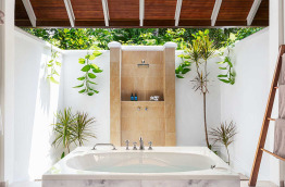 6 Beach Villas (103 m2) sont situées côté lever de soleil, dans la végétation, mais proches de la plage. Dans votre jardinet privé, vous bénéficierez d'une douche extérieure et d'un bain à jets.