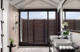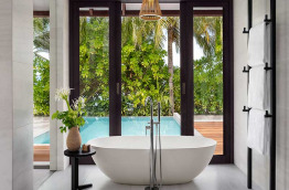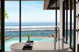 7 Ocean Pool Villas d’environ 133 m2 situées dans un coin calme au Sud de l’île, bénéficient d’une magnifique vue surélevée sur la mer. Chacune est équipée d’une salle de bains semi-extérieure avec douche et baignoire, ainsi que d’une douche extérieure dans un jardinet qui donne sur votre piscine privée. Elles ne bénéficient pas d'un accès au lagon depuis la terrasse.