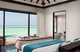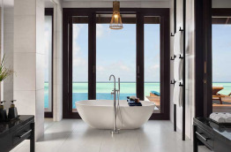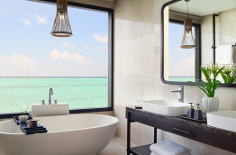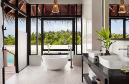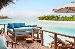 Plus spacieuses sur environ 83 m2, les 14 Deluxe Over Water Villas bénéficient d’un dressing et d’une double terrasse équipée d’un canapé et de transats pour vos bains de soleil. La salle de bains est semi-ouverte pour profiter de l’air tropical, et dispose d’une grande baignoire.