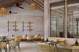 Fushi Café, situé sur la plage, est le restaurant principal, qui sert le petit-déjeuner et le dîner sous forme de buffets internationaux.