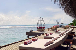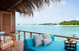 9 Over Water Villas d’environ 56 m2 sont construites sur pilotis au-dessus de la surface du lagon. Le décor est naturel : plancher en bois, toit en feuilles de palmes et tissus à motifs colorés… Votre terrasse privée donne sur la mer, et offre un accès direct au lagon ; elle est équipée d’une table et d’un canapé.