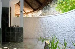 Toutes les villas situées sur la plage bénéficient d'une salle de bains ouverte sur l'extérieur pour profiter du bonheur de la douche en plein air.