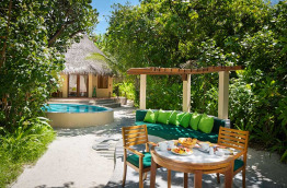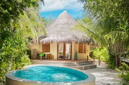 Les 20 Deluxe Villas offrent en plus un petit bassin sur la terrasse, une baignoire et une décoration plus soignée. Elles sont situées dans la végétation au bout de l’île.