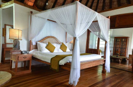 2 superbes Sunset Lagoon Villas sont les plus spacieuses, avec environ 154 m2. Elles sont installées au soleil couchant, en bout de jetée. Elles bénéficient d'une vue magnifique et sont souvent réservées longtemps à l'avance. Elles sont meublées d'antiquités et autres pièces de mobilier ancien.