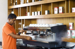 Le Kandooma Café est le restaurant principal où sont servis les repas sous forme de buffet, avec terrasse extérieure ou à l’intérieur, au choix...