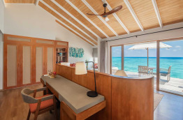 Les 30 Overwater Villas, mesurant environ 61 m2, sont idéales pour se sentir au plus proche de l'océan, car elles sont construites sur pilotis, avec un accès direct au lagon depuis le balcon. Elles sont mitoyennes, par groupes de deux, offrent une salle de bains avec une baignoire et une douche, un coin salon, et une belle terrasse équipée de chaises longues et parasol.