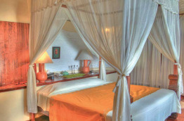 10 Deluxe Beach Villas de 100 m2 peuvent accueillir 4 personnes. Face à la mer côté Sud, elles offrent une chambre, une salle de bains avec douche extérieure, un bain à jets et un espace extérieur avec balançoire. Leurs occupants disposent de leur propre plage privée.