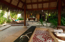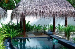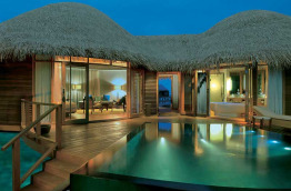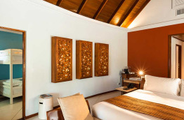 Toutes les villas, y compris celles sur pilotis, ont une petite piscine privée et sont pourvues de l’air conditionné. Elles sont confortablement meublées de bois et de marbre, et équipées de sèche-cheveux, télévision, lecteur DVD, accès internet Wi-Fi gratuit, connecteur pour lecteur MP3, téléphone, minibar et mini-cave à vins, choix d’oreillers à disposition, nécessaire à thé et café, coffre-fort et coin salon. Chaque villa possède aussi une terrasse ou un balcon meublé, ainsi qu’une salle de bains avec douche séparée (intérieure ou extérieure), baignoire et toilettes.