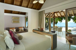 Les 9 Beach Villas sont disséminées dans la dense végétation de l’île. Elles offrent un confort de haut niveau sur une surface totale de 122 m2, et des vues spectaculaires sur la plage et le lagon turquoise. La végétation peut cependant brouiller votre vue sur l'océan.
