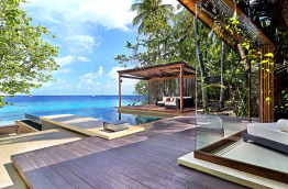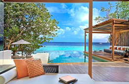 4 Deluxe Beach Pool Villas de 265 m2, identiques dans les aménagements intérieurs. La différence consiste en la présence d'une belle et grande piscine extérieure, plus d'un coins repos ombragé pourvu de confortables coussins.