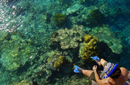 Les eaux de l’atoll de Gaafu Alifu sont très préservées et encore inexplorées. Elles vous réservent des plongées fabuleuses. Le récif est exceptionnel et accessible directement depuis la plage à la palme, entre 30 m et 80 m de distance.