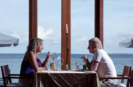 Adaaran Prestige Water Villas propose une formule All inclusive, certaines boissons alcoolisées et non alcoolisées sont incluses, y compris celles du minibar. Les clients des Water Villas ont accès à un restaurant privé qui leur est réservé. Les repas sont servis à la carte. Des dîners spéciaux peuvent également être organisés.