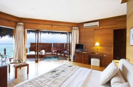 Elles sont conçues et décorées avec goût, en bois avec un éclairage étudié, équipées de l’air conditionné, salle de bains avec douche, un bain à jets sur votre terrasse, un coin repos et salon sur la terrasse, minibar, machine à café expresso, téléphone, TV écran plat LCD, système audio-vidéo, coffre-fort. Une échelle en bois vous permet de descendre dans le lagon directement depuis votre villa. Le matériel de plongée libre est prêté gracieusement.