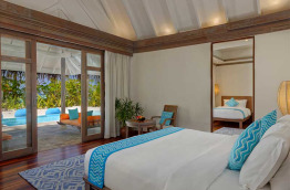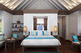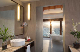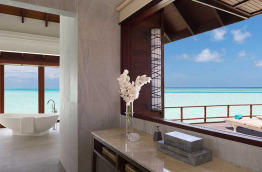 19 Sunrise Over-Water Suite côté soleil levant, et 15 Sunset Over-Water Suite au soleil couchant, construites sur une surface de 70 m2 chacune, sur pilotis au-dessus du lagon. Les équipements sont identiques aux Beach Villas, à ceci près que la chambre est plus lumineuse, la salle de bains est fermée, et vous bénéficiez d’une machine à expresso. La terrasse de 49 m2 est aménagée et bénéficie d’un accès direct au lagon.