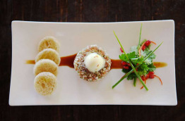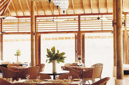 Cocoa Island ne propose qu’un seul restaurant, Ufaa, installé sur la plage, dans un pavillon en bois, largement ouvert sur l’extérieur. Pour 33 chambres, cela n’a rien d’étonnant, en revanche, ce qui est étonnant c’est que le chef vous garantit un menu qui change quotidiennement en fonction des arrivages de produits frais. La cuisine est raffinée, mélangeant avec succès les saveurs du Sri Lanka, d’Inde du Sud, de Thaïlande avec les produits locaux.