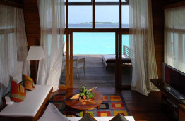 Cocoa Island comprend seulement 33 suites et villas construites sur pilotis au-dessus du lagon. Elles sont décorées avec goût dans un style mixant matériaux chaleureux, beaucoup de bois, meubles coloniaux, bois peint, et quelques touches contemporaines.