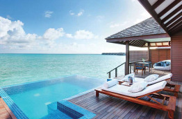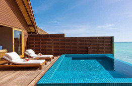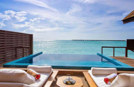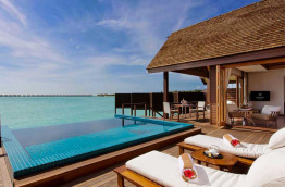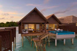 5 Ocean Villas with Pool de 290 m2 sur pilotis qui, outre les services des Deluxe Water Villas, bénéficient en plus d'un salon-salle à manger, et d’une plus grande terrasse.