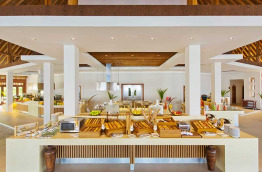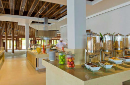 Matheefaru, le restaurant principal, au bord de l’eau, les pieds dans le sable, sert une cuisine internationale présentée sous forme de généreux buffets.