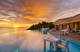 Le Sunset Pool Café est adjacent à la belle piscine à débordement. La carte propose un choix de spécialités d’Orient et d’Occident dans un joli cadre faisant face à l’océan.