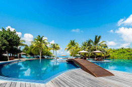 Deux très belles piscines : une piscine à débordement à la pointe Est, puis la piscine Meeru qui comprend une pataugeoire et un espace pour les enfants, face à la mer.