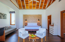 6 Beach Villas de 85 m2 sont situées sur la partie Ouest de l’île. La chambre est spacieuse, la salle de bains ouverte donne sur un jardinet extérieur, et comprend un bain à jets et une douche, ainsi qu’une douche extérieure dans le jardinet. La terrasse en bois est aménagée pour votre relaxation, face à la mer. Elle bénéficie d’une partie ombragée.