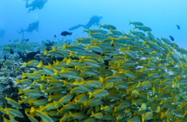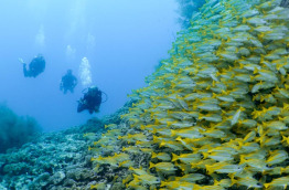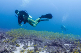Le house-reef qui ceinture l’île de Kuredhivaru est accessible du côté Ouest et Sud-Ouest uniquement. Vous pouvez y aller à la nage depuis la plage, mais le plus simple est de vous y rendre depuis la jetée du centre de plongée. Des échelles dédiées ont été installées pour une mise à l’eau facile et vous êtes directement au-delà du récif, sans risque d’endommager le corail. Vous serez surpris de la quantité de poissons qui vivent sur ce récif ou qui passent au large.
