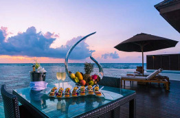 4 Sunset Water Suites de 182 m2, les plus belles de l’hôtel. Elles sont construites en bout de jetée et bénéficient ainsi d’une totale intimité et d’une vue fantastique sur l’océan Indien. La piscine est plus grande, 14 m2, et la terrasse plus spacieuse. À l’intérieur, outre le grand lit king-size à baldaquin, vous bénéficiez d’un confortable lit de repos, téléviseur 52’ LCD avec home cinéma. Un majordome est également à votre disposition afin de vous assurer un service irréprochable.