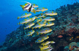 Lily Beach Resort & Spa est une île fantastique pour la pratique du snorkeling. Elle est orientée Est-Ouest, et le récif fait le tour de l’île sur les trois-quart. C’est sans conteste l’un des plus beaux récifs des Maldives. L’accès est possible de part et d’autre à 10 ou 20 m de la plage, et les conditions de snorkeling sont excellentes. Il est même possible de se laisser dériver dans le courant s’ils ne sont pas trop forts. Le récif offre de jolis tombants où vous pourrez faire de belles rencontres. Il n’est pas rare de croiser des tortues, raies, et une multitude de poissons de récifs. D’autres zones plus protégées pourront rassurer les débutants. Si vous avez choisi les Water Villas, vous pourrez même partir directement de votre terrasse.