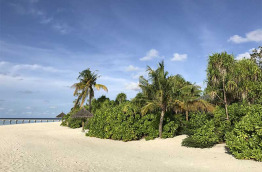 La plage de sable blanc ceinture l’île dont on peut faire le tour à pied, et bien entendu, comme sur toutes les îles, la largeur de la plage devant les villas varie au gré des saisons et des marées.