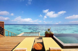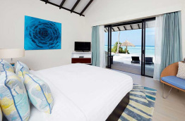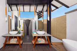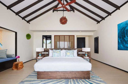 Les villas sont spacieuses, lumineuses et décorées avec beaucoup de goût, mêlant style contemporain sobre et chaleureux dans les tons clairs avec des touches de couleur, ainsi que des éléments traditionnels maldiviens. Chaque villa est pourvue d’une terrasse équipée de chaises longues, ainsi que d’un coin salon à l’intérieur.