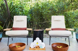 The Spa comprend 6 salles de soins nichées dans la dense végétation du centre de l’île. Il est même possible de réserver un soin en couple en fin de journée, et de se faire servir le dîner dans le cadre romantique du Spa à l’issue de votre soin.