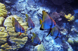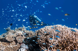 Les sites sont encore très préservés car on compte peu d’hôtels sur cet atoll. Vous serez très certainement les seuls plongeurs sur les sites et pourrez explorer les passes qui sont souvent fréquentées par une faune pélagique.