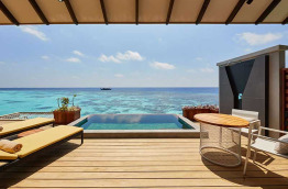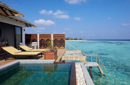 Les équipements intérieurs sont identiques à ceux des Beach Villas. Sur votre terrasse, des filets ont été tendus au-dessus de l’eau pour vos bains de soleil, et un escalier vous permet d’accéder directement au lagon.