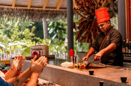 Toujours en Asie, c’est au Lagoon Bar, construit sur pilotis, que vous pourrez déguster sushis, sashimis et tapas aux influences asiatiques. Il est ouvert pour le déjeuner et le dîner.