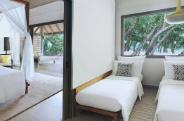 5 Overwater Deluxe Pool Villas de 200 m2 sont conçues pour les familles. Elles sont quasiment identiques à la catégorie précédente, mais comptent une petite chambre à deux lits pour les enfants, entre la chambre parentale et la salle de bains.