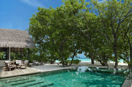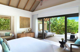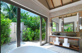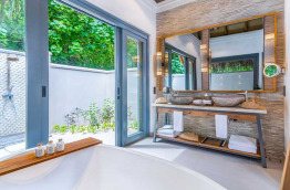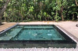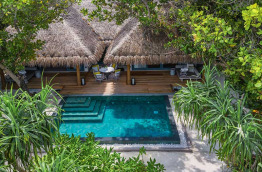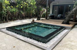 10 Beach Villas with Plunge Pool de 115 m2 sont nichées dans la végétation sur la partie Nord de l’île. Très proches de la plage, elles bénéficient d’un bain à jets devant la villa, et d’une terrasse faisant face à la mer. La salle de bains est sur l’arrière de la villa.