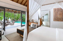 20 Beach Pool Villas se trouvent de part et d’autre de l’île. Avec leurs 220 m2, elles sont équipées d’un coin lecture séparant la chambre et la salle de bains, pouvant être transformé en une seconde chambre pour accueillir deux enfants par exemple. Toutes les pièces, y compris la salle de bains, sont orientées vers la plage, et une petite piscine est disposée sur le devant.