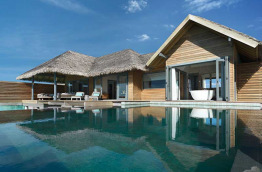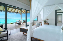 5 One Bedroom Overwater Pool Residences de 300 m2 bénéficient d’une chambre, d’un grand salon, d’une salle de bains, et d’une grande terrasse sur toute la longueur de la villa qui offre en plus une belle piscine de 62 m2 face à la mer. Elles sont parfaitement orientées pour profiter du coucher de soleil.